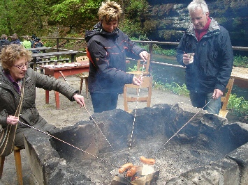 Onderweg tijdens de Spirituele wandeling worstjes grillen